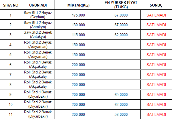 25.02.2026 tarihinde Adana Ticaret Borsamızın Elektronik Satış Salonu’nda gerçekleşen Çukobirlik ihalesinde aşağıdaki sonuçlar alınmıştır.