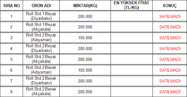 30.12.2025 tarihinde Adana Ticaret Borsamızın Elektronik Satış Salonu’nda gerçekleşen Çukobirlik ihalesinde aşağıdaki sonuçlar alınmıştır.