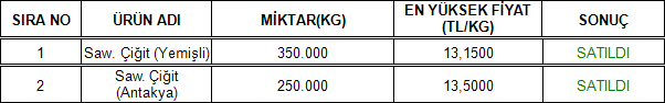 25.09.2025 tarihinde Adana Ticaret Borsamızın Elektronik Satış Salonu’nda gerçekleşen Çukobirlik ihalesinde aşağıdaki sonuçlar alınmıştır.