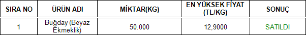 Çukurova Üniversitesi Buğday Satış Sonucu