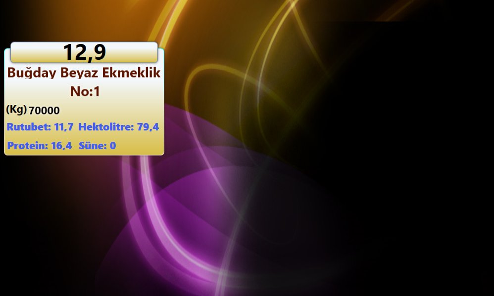 Çukurova Üniversitesi Ziraat Fakültesi Araştırma ve Uygulama Çiftliği Tarla Şubesi tarafından Elektronik Alım-Satım Salonumuzda gerçekleştirilen seans sonucunda; 70 ton Ekmeklik Buğday (Adana 99) 12,900 TL/Kg fiyatla alıcı buldu.