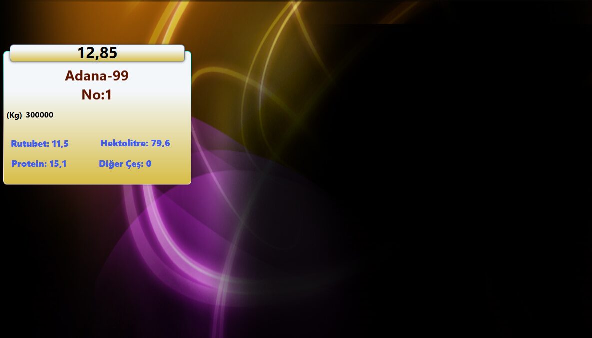 Çukurova Üniversitesi Ziraat Fakültesi Araştırma ve Uygulama Çiftliği Tarla Şubesi tarafından Elektronik Alım-Satım Salonumuzda gerçekleştirilen seans sonucunda; 300 ton Adana-99 Buğday 12,850 TL/Kg fiyatla alıcı buldu.